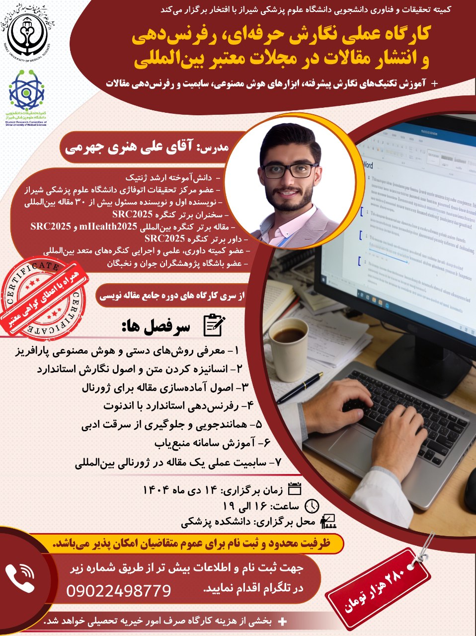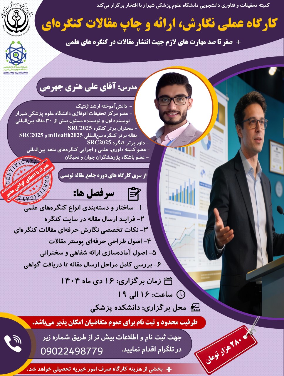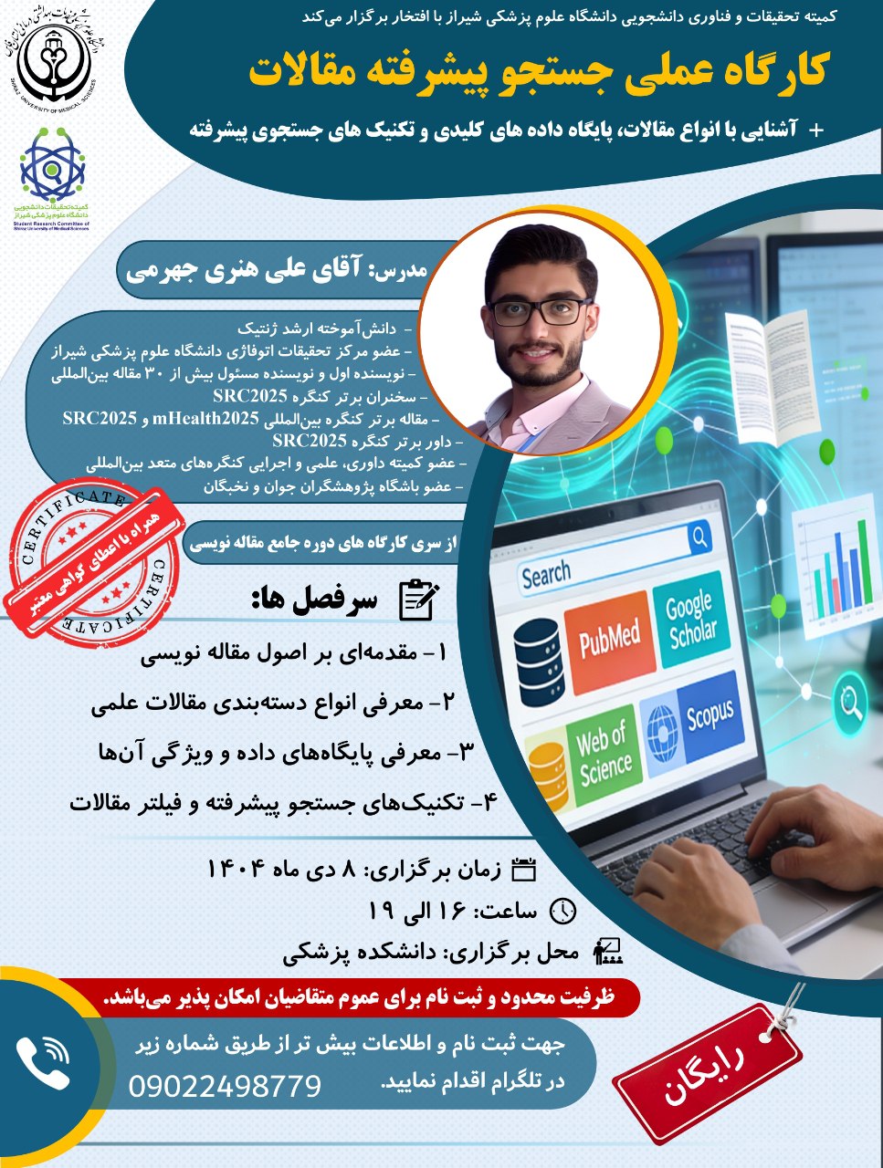 همراه با صدور سرتیفیکیت از جانب کمیته تحقیقات و فناوری دانشجویی دانشگاه علوم پزشکی شیراز