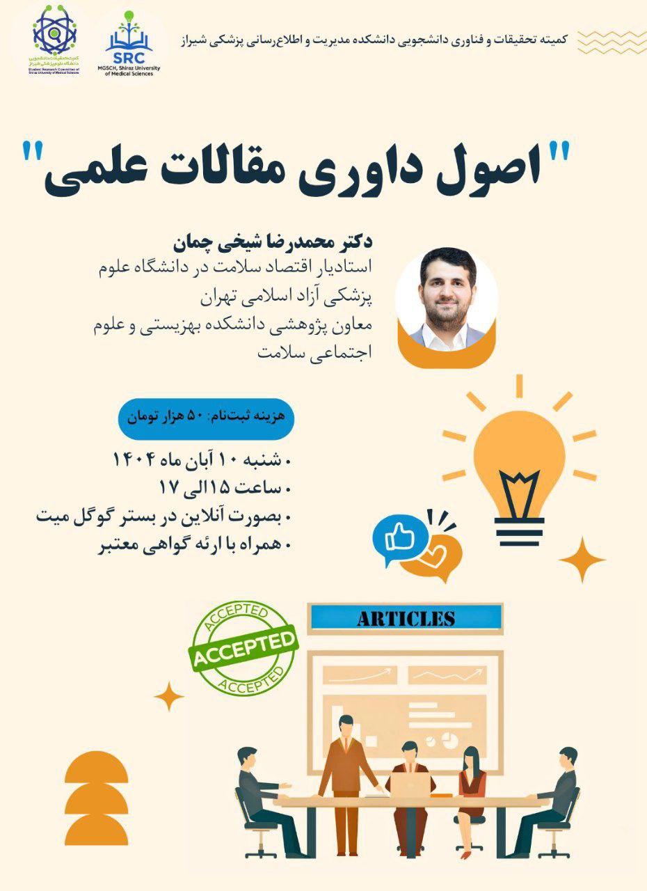 کمیته تحقیقات و فناوری دانشجویی دانشکده مدیریت و اطلاع‌رسانی پزشکی شیراز برگزار می‌کند: