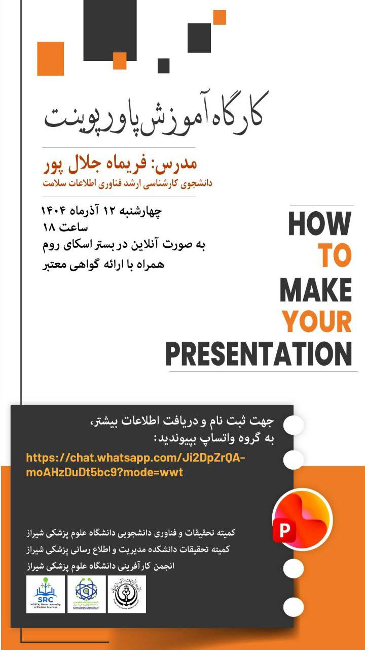 در این کارگاه با اصول طراحی، نکات کلیدی ارائه و تکنیک‌های جذاب‌سازی اسلایدها آشنا می‌شوید.