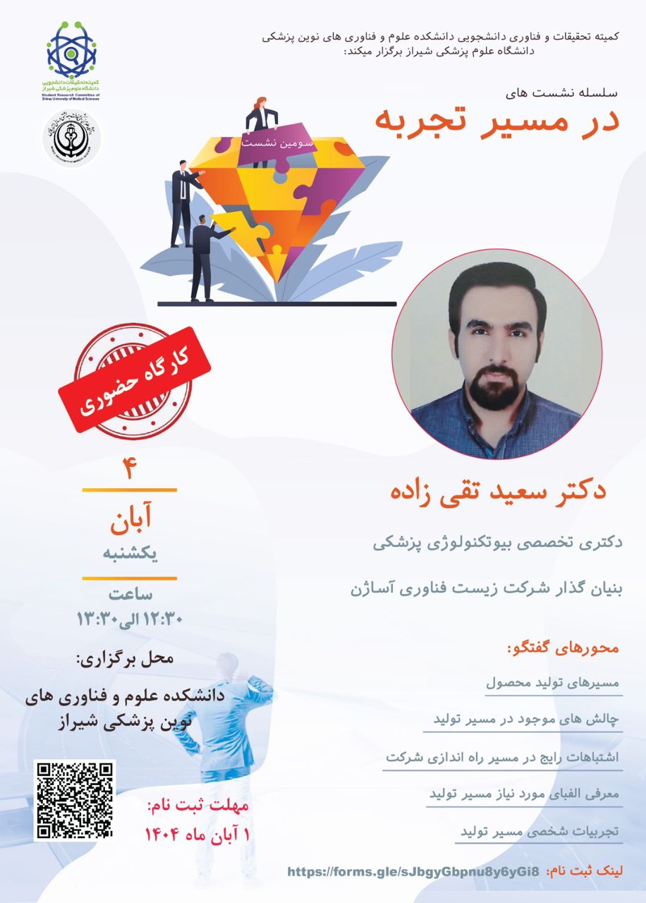 کمیته تحقیقات و فناوری دانشجویی دانشکده علوم و فناوری های نوین پزشکی دانشگاه علوم پزشکی شیراز برگزار می کند: